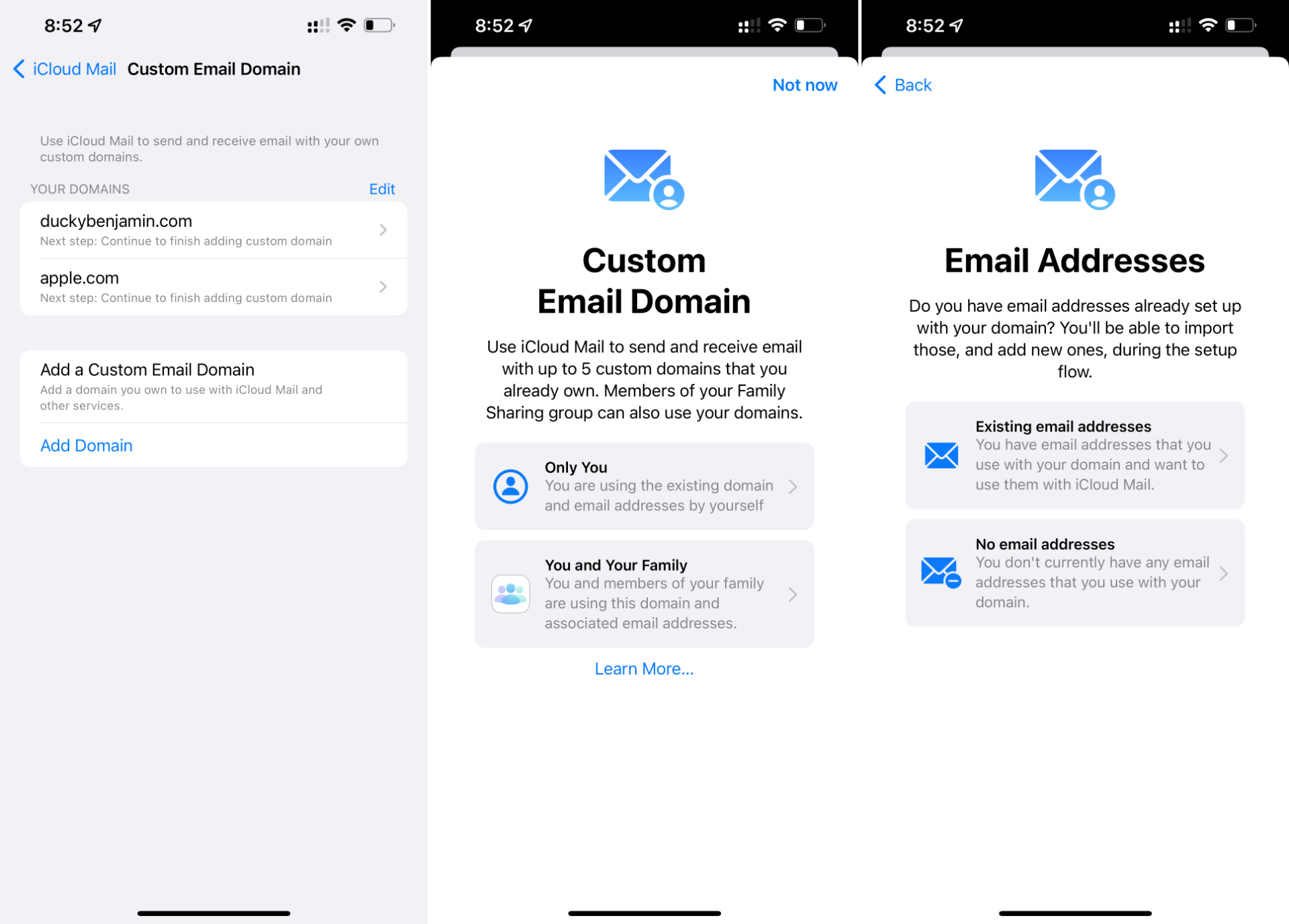 Apple has begun baking in its iCloud+ custom email domain UI into iCloud Mail settings in iOS. Previously, all such settings were found exclusively on iCloud.com, although Apple still pushes people to iCloud.com to fully configure custom email domains.