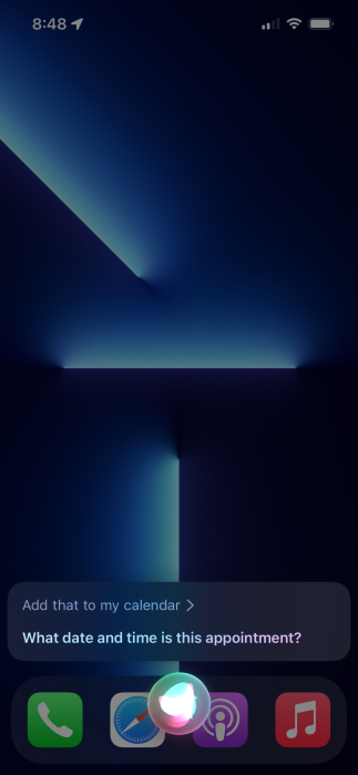 There’s nothing surprising about this interaction with Siri. It knew exactly when the Super Bowl was scheduled, and which teams were playing in it. Siri can also create calendar entries for you.