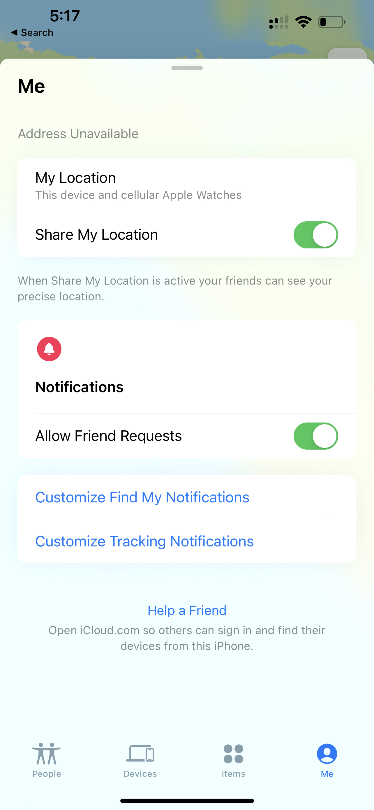 The Me tab in the Find My app gets updated with more granular notification configuration links. In lieu of the Item Safety Alerts switch, iOS 15.4 beta 4 includes direct links to Customize Find My Notifications and Customize Tracking Notifications in Settings → Notifications.