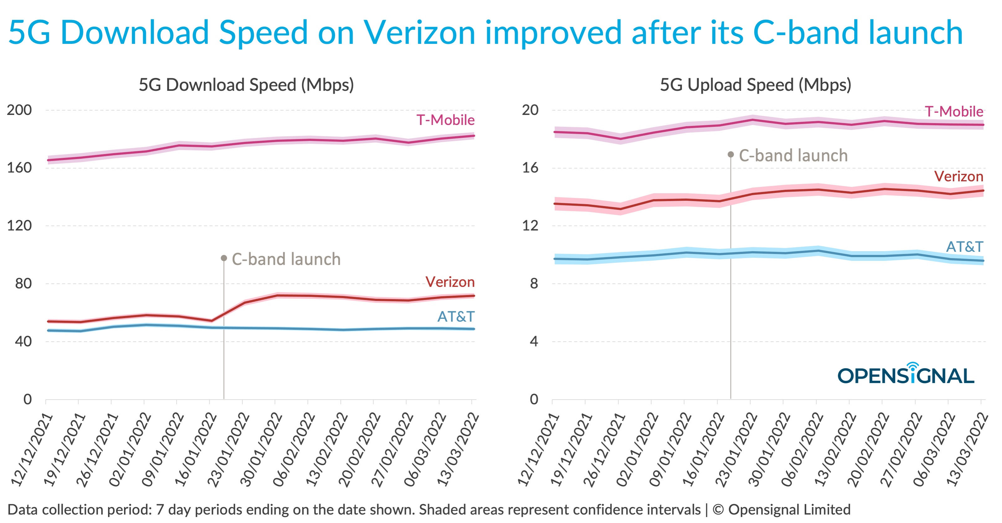 After deploying its C-band 5G coverage at the beginning of the year – including some controversy with the FAA – Verizon and AT&T are looking to catch up to T-Mobile. Now a new report from Opensignal shows how much of a difference the new mid-band 5G coverage has made for performance so far.