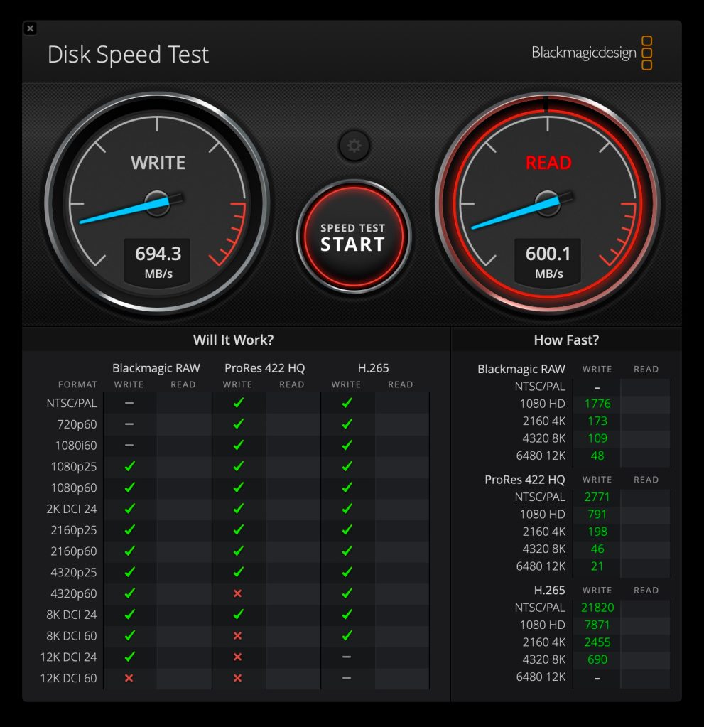 In my hands-on test with the Samsung T7 Shield, I was fairly happy with the performance. In my first test I was able to to transfer a ~10GB file in about 10 seconds, which translates to roughly 8Gbps. In another test I was able to transfer a larger ~150 GB file in 180 seconds, which is roughly 6.7Gbps, more than enough for 4K ProRes workflows, and all without causing the exterior of the drive to become more than just a little warm. These tests, while not scientific, provide a general idea of what performance is like when connected to a Mac Studio or other Mac computer via USB-C.