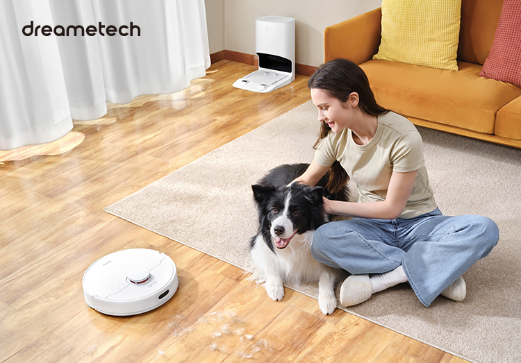 The self-emptying DreameBot docks and charges at its base station that uses DualBoost technology with two air circulation paths to prevent clogs when automatically emptying the dust bin. This highly efficient system isn’t just convenient for hands-free operation. It also eliminates dust and dirt from spreading through the air when emptying the vacuum canister.