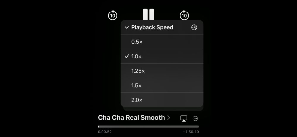 In fact, Apple has further emphasized these transport controls with some interaction shortcuts. Regardless of whether the pause button is visible or not, the tap target is still active. This means you can tap in the dead center of the display to quickly pause the video. Tap again to play.