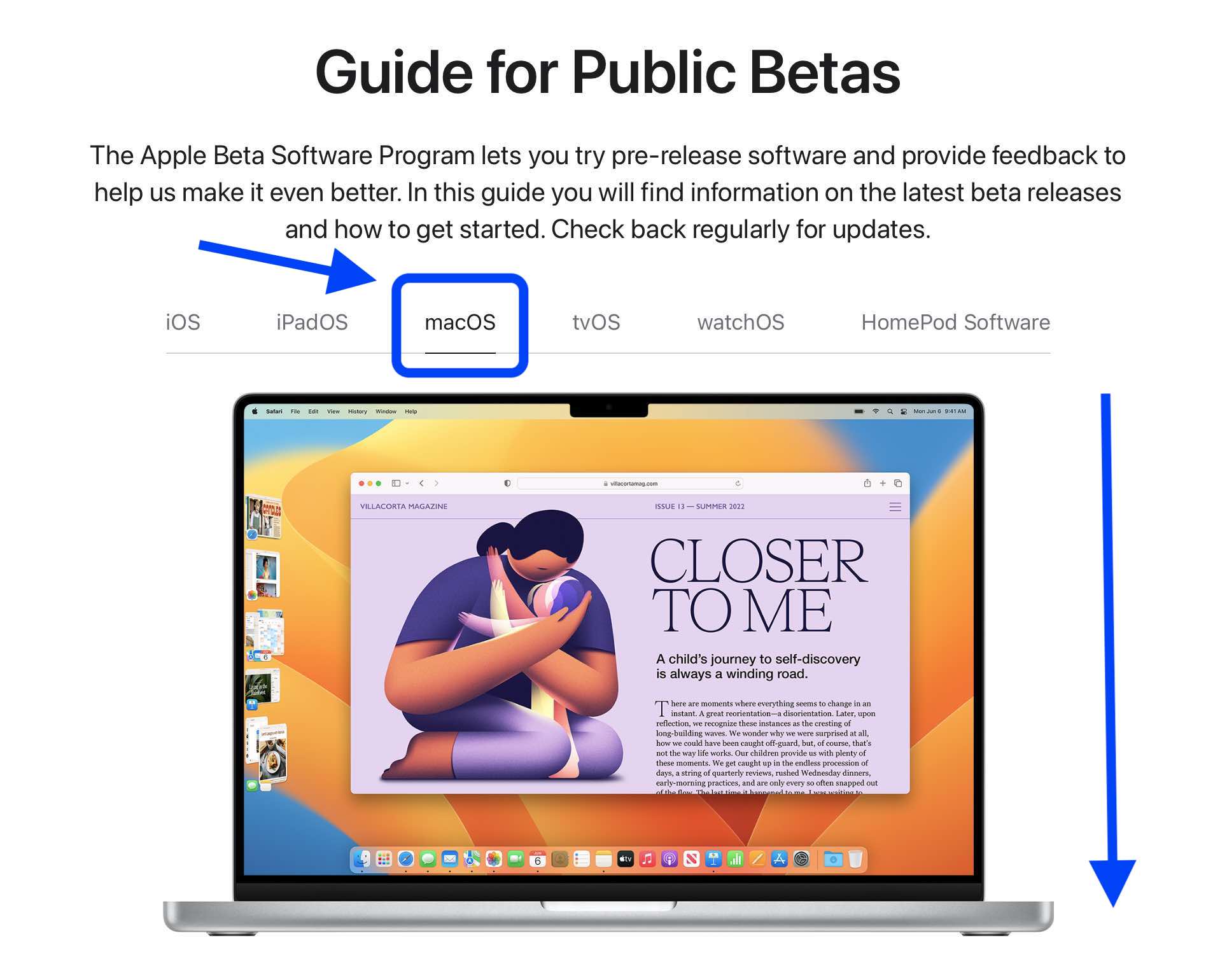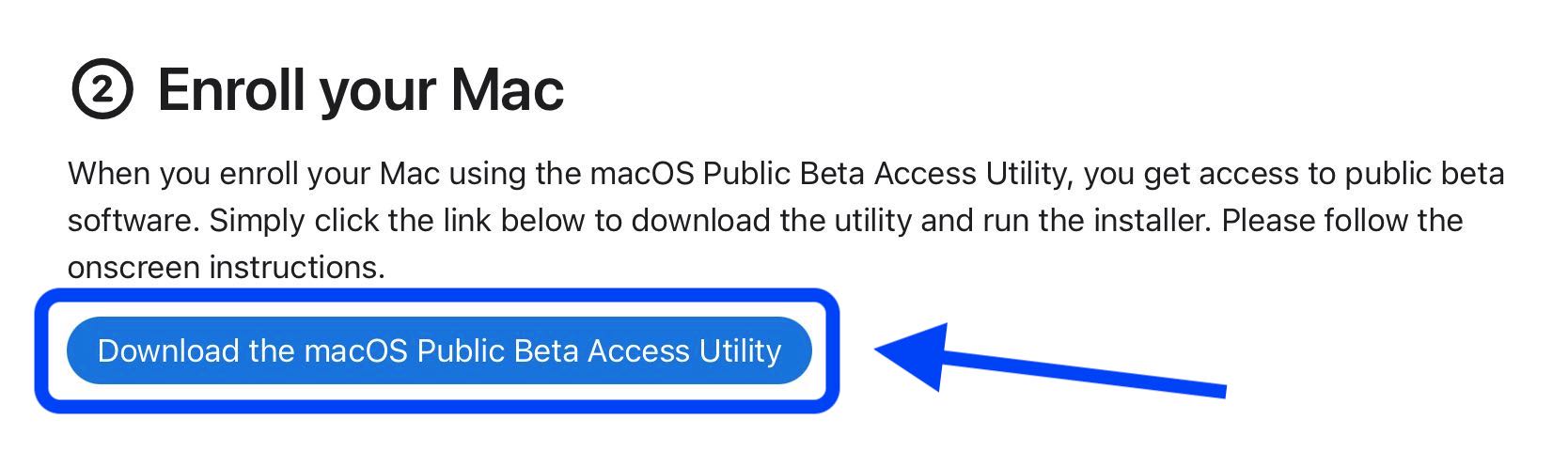 - Scroll down again and click Download the macOS Public Beta Access Utility
