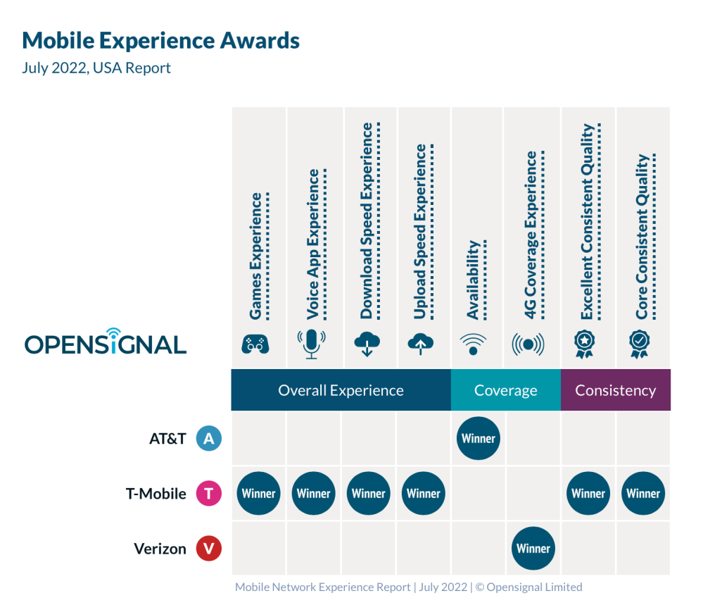 Opensignal published its July 2022 5G User Experience Report for the US this morning that covers data collected between March and June. The study is based on millions of devices and billions of measurements.
