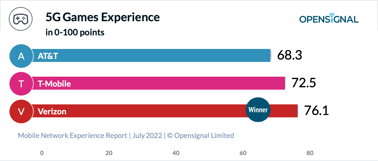 Just like the like time around, Verizon was able to beat out T-Mobile for the Voice app and Games experiences. AT&T didn’t come away with any wins for the six categories in Opensignal’s 5G study.