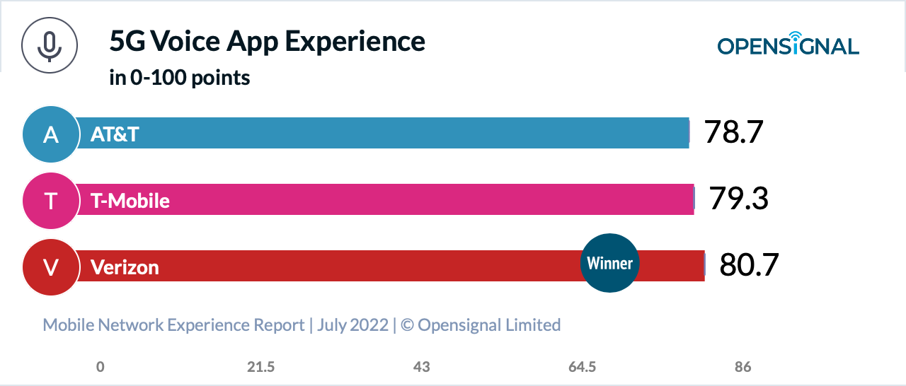 Tight results between all the carriers for the 5G voice experience, but Verizon was able to eke it out.