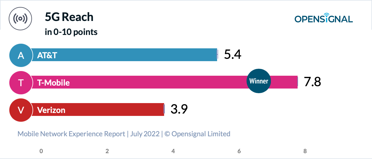 Opensignal says this is T-Mobile’s fifth win for 5G reach, here’s how it describes the metric: