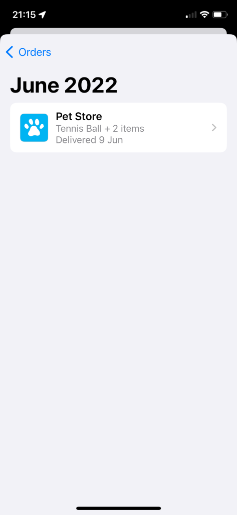 Orders are saved in the Orders screen and synced through iCloud in the Wallet app so you can find them later, even months down the road. The entire process is private by design, and data is synced using end-to-end encryption, so Apple doesn’t know what your orders are.