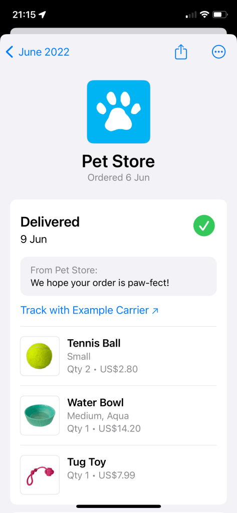 Generating order payloads that can be viewed in the Wallet app naturally requires coordination on the behalf of the merchant to communicate with Apple’s back end. It remains to be seen how many companies will adopt the feature.