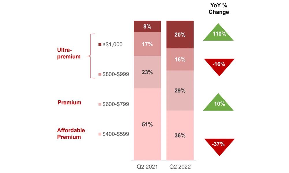 The $600-$799 (premium) and $1,000 and above (ultra-premium) segments recorded increases in Q2 2022 […]