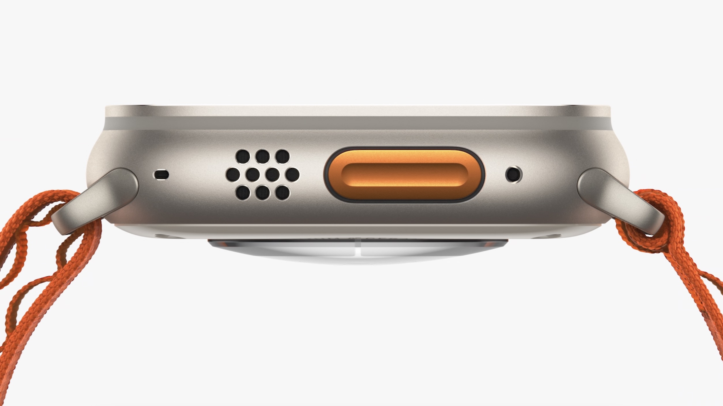 • New Action button on the side that’s bright orange and customizable. New Digital Crown design. Added a second speaker for increased volume.