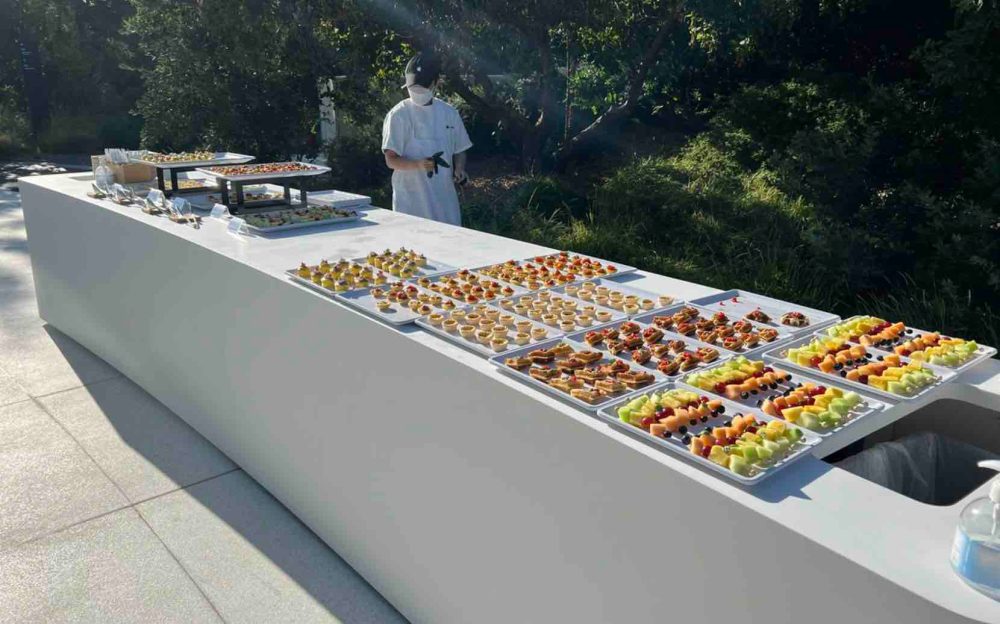 • Here’s a look at the spread of food that Apple is handing out to the press. Everything is bite-sized and beautifully arranged as usual (via Scott Stein)