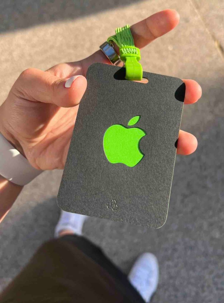 • Tom’s Guide Kate Kozuch shared this snap of Apple’s eco-friendly press badges, with the green Apple logo as well.