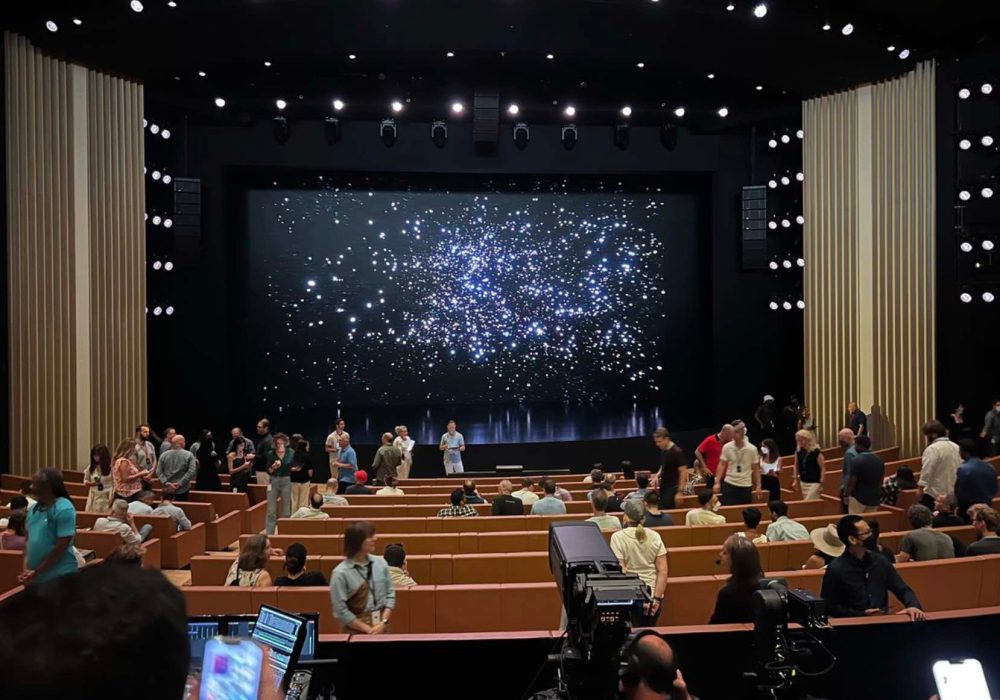 • Here’s our first look inside Steve Jobs Theater as the press gets settles in and mingles with Apple execs (via Neil Cybart).
