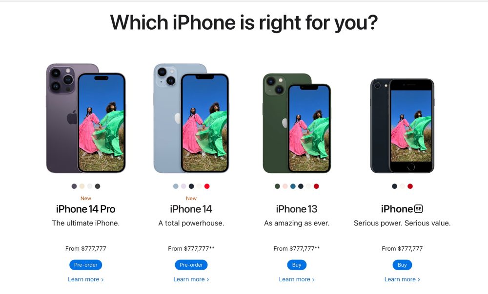 Apple website glitch sets iPhone 14 price at $777,777/mo
