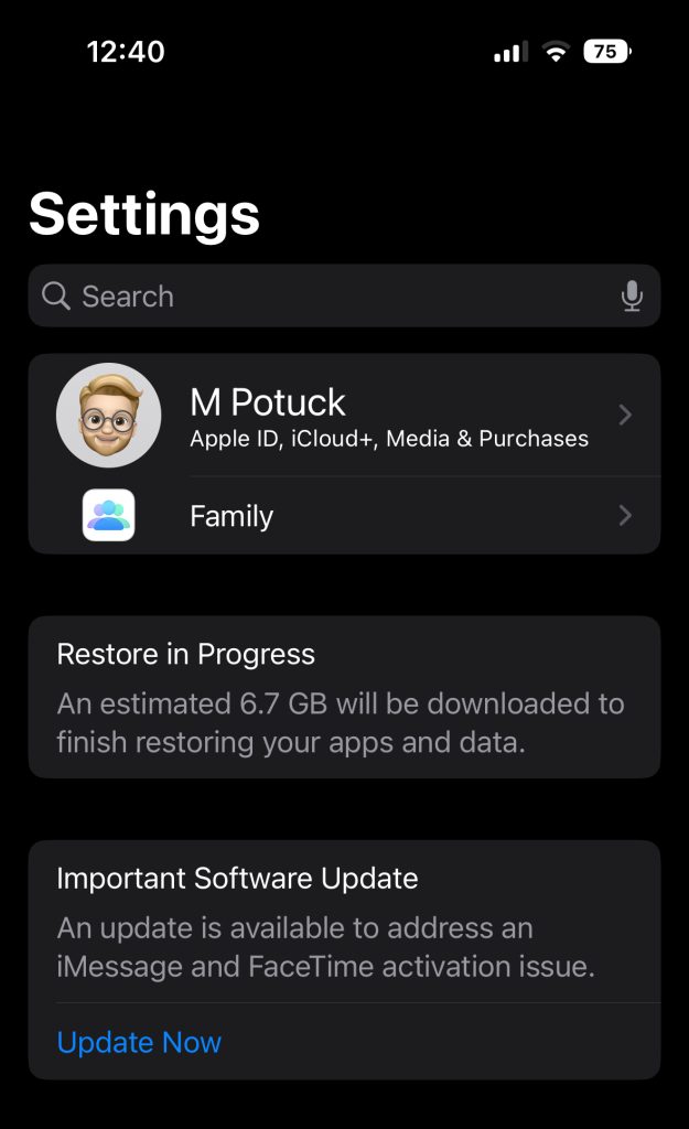Apple says that iMessage and FaceTime related issues should be resolved after updating to the latest iOS version. As part of new device setup, your new iPhone may prompt you to upgrade before you even reach the home screen. If not, after getting your iPhone 14, go to Settings -> General -> Software Update and update to the latest available version.