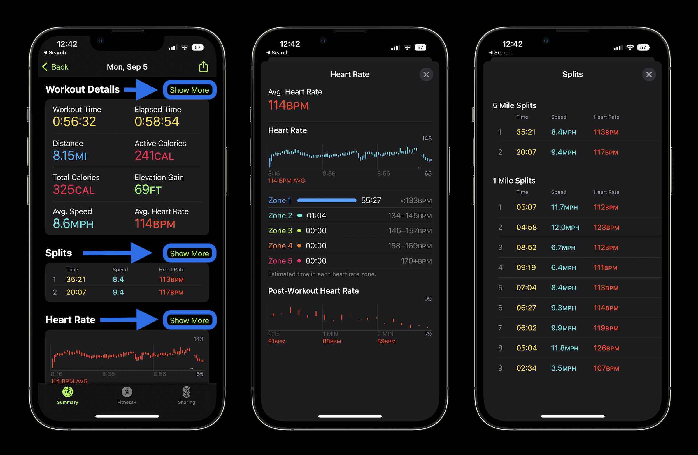 After your ride, you can see a more detailed breakdown of the estimated time you spent in each heart rate zone, your splits, and other details on the iPhone Fitness app.
