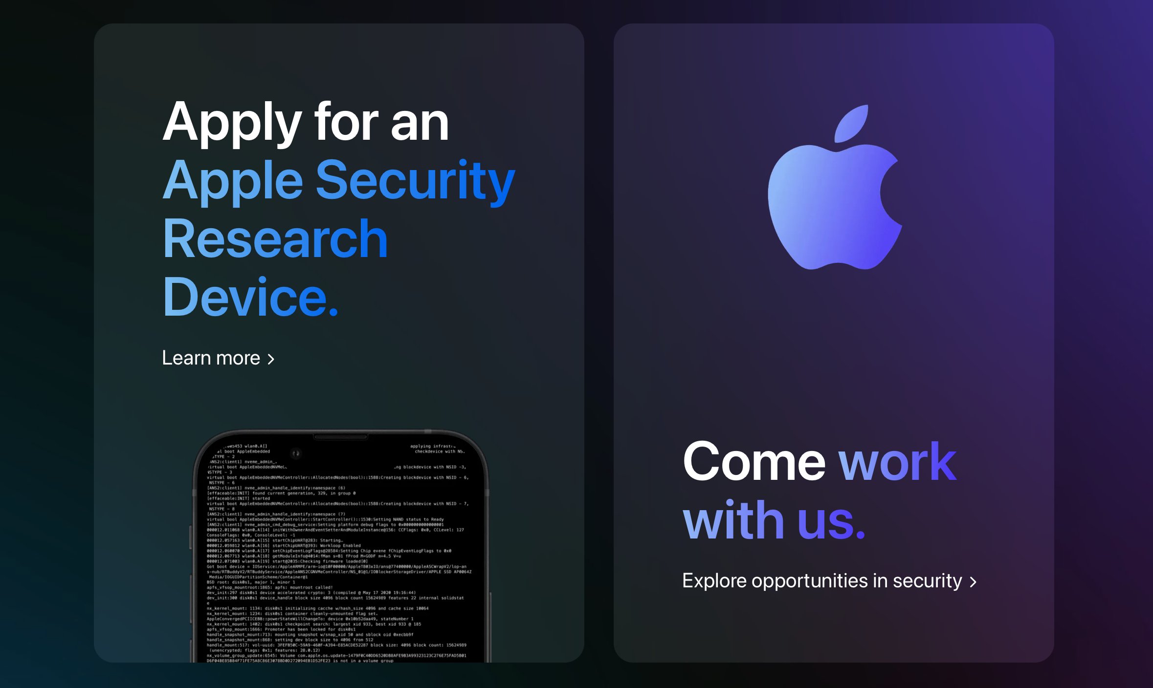 Another announcement shared on the new website is that the window for Apple Security Research Device applications is open: