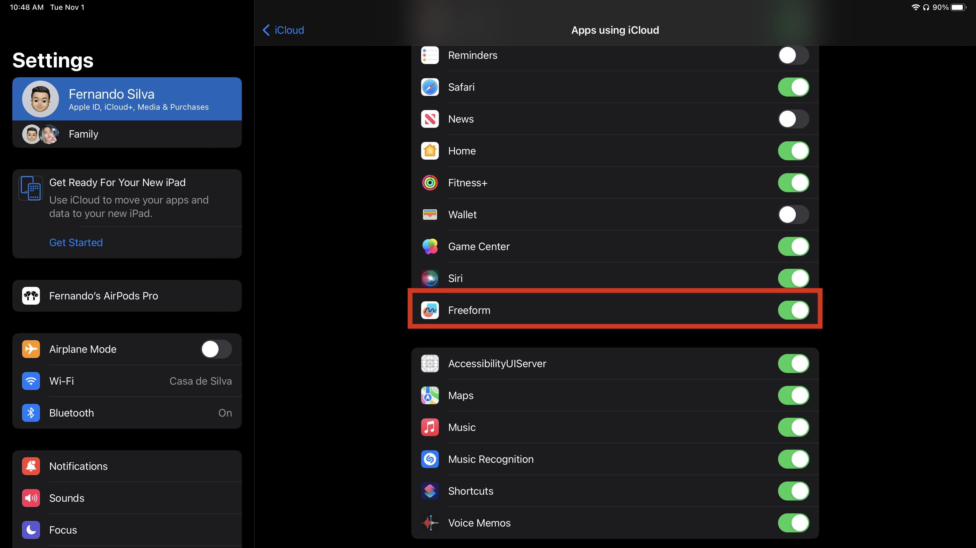 Before we even get started, I suggest making sure the sharing iCloud settings for Freeform are correctly turned on. Since Freeform is a collaboration app, being able to share the content with others is extremely important.
