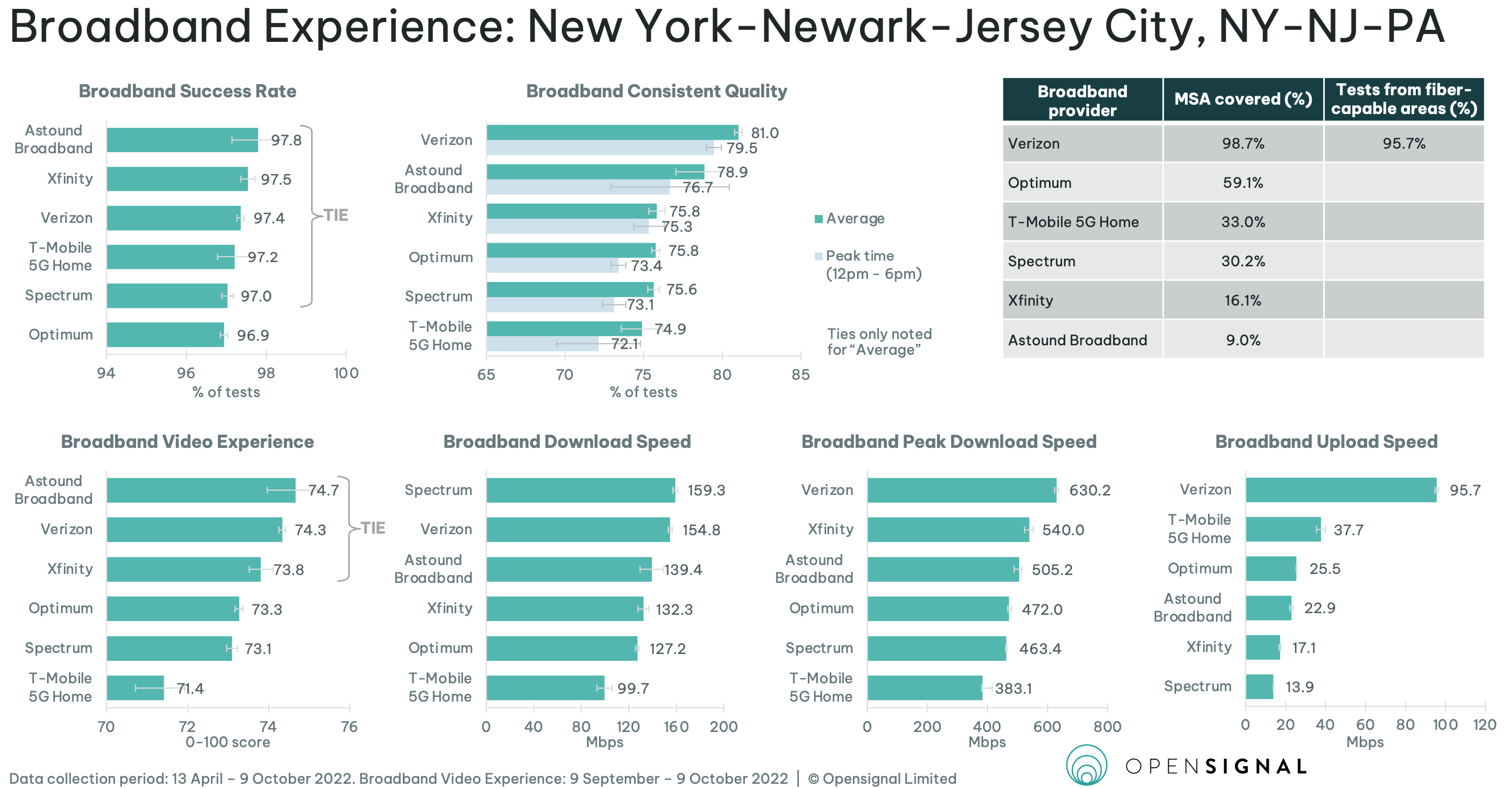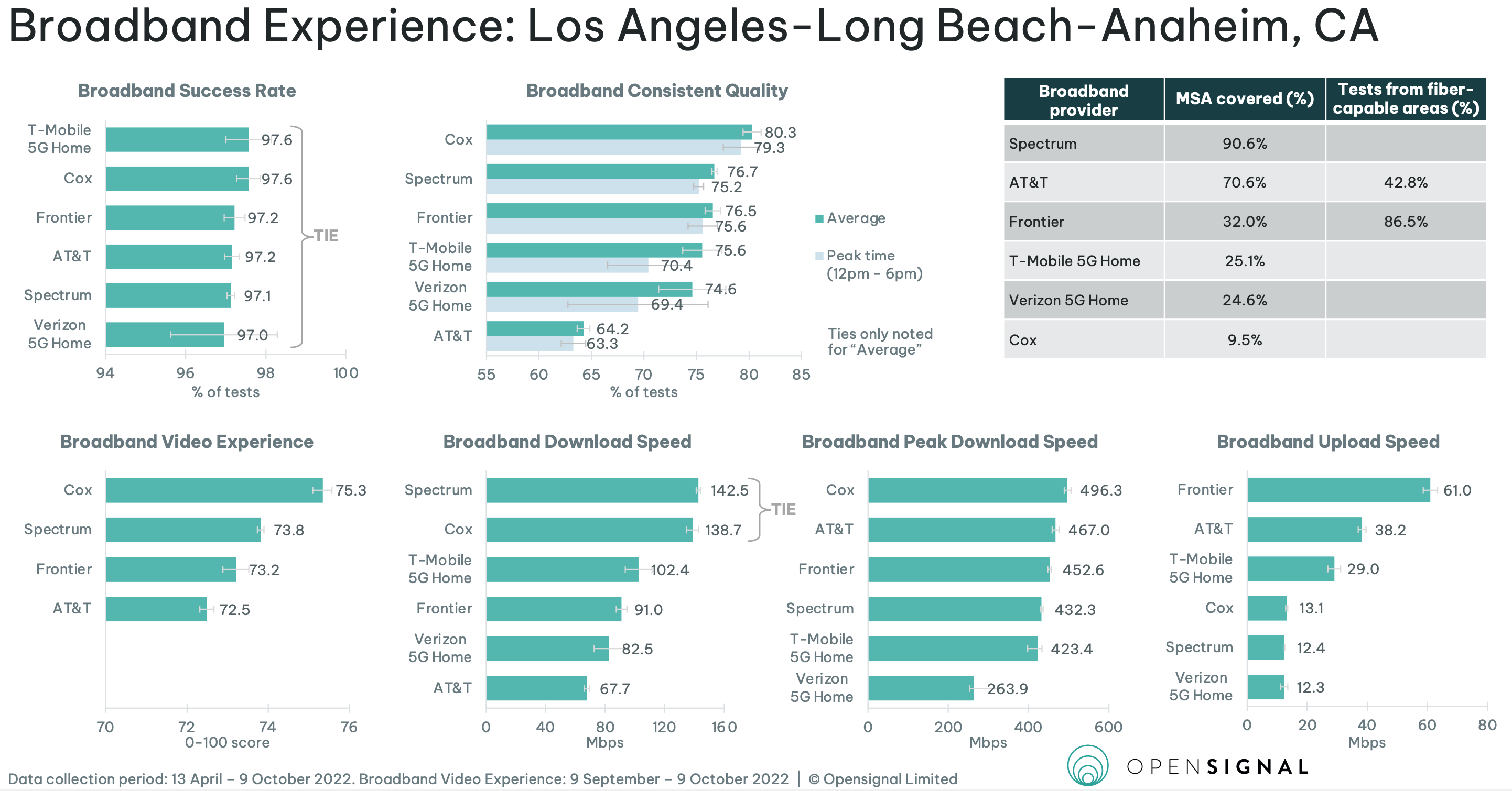 - In most markets, cable companies had the highest Broadband Download Speed scores. This success for cable providers — Spectrum, Xfinity, Optimum, and Cox — was despite the arrival of 5G- based fixed broadband. Fiber players are changing this situation, but in the 25 cities analyzed in this report they lead in a minority.