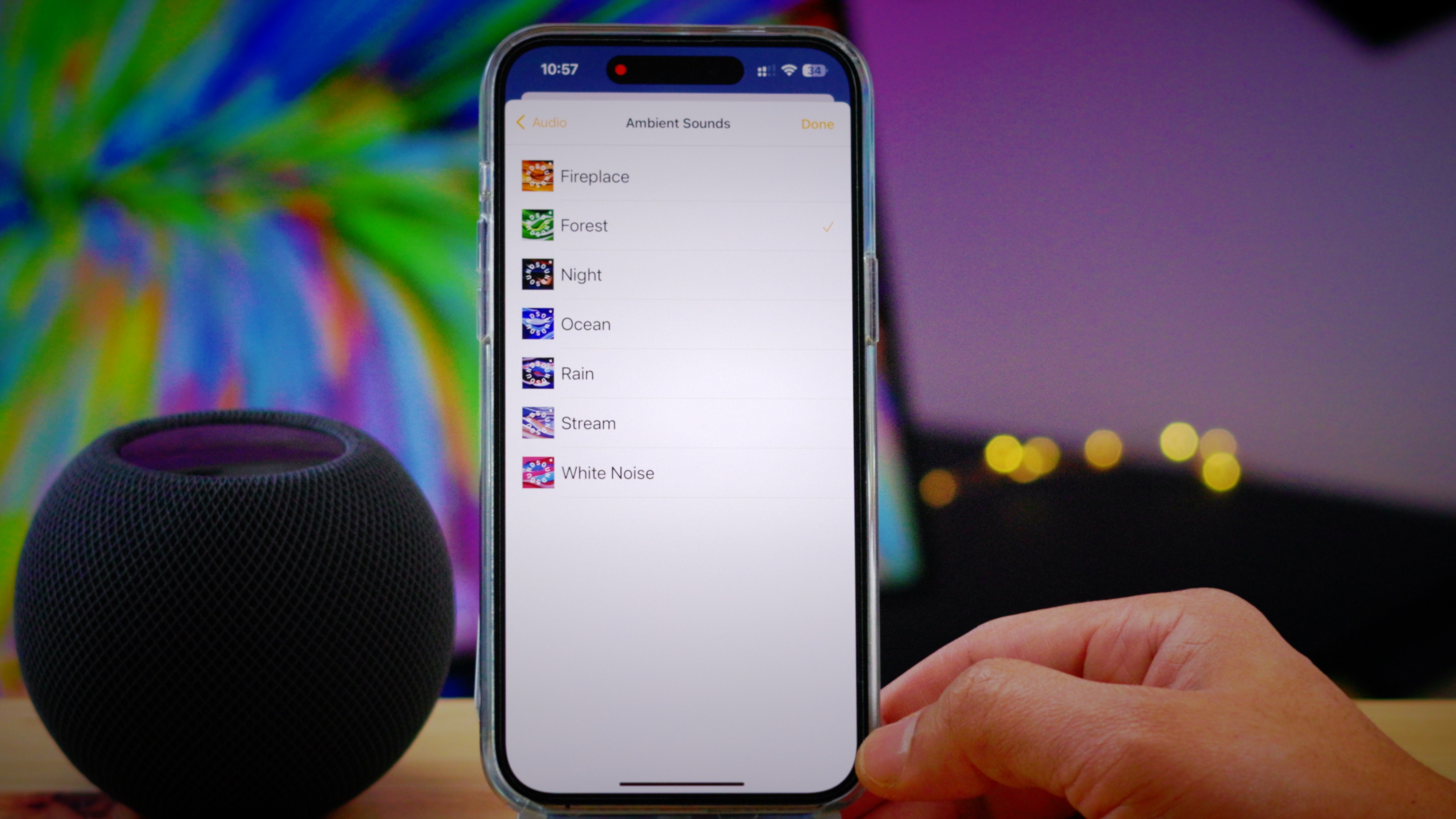 Everyone knows that you can play Apple Music on the HomePod, but did you know that you can also request ambient sounds like white noise and rain? In iOS 16, ambient sounds have been remastered, and you’ll now find a direct link to these sounds that can be added to alarms, scenes, and automations. In all, you’ll find seven ambient sounds to choose from, like fireplace, forest, night, orientation, rain, stream, and white noise.