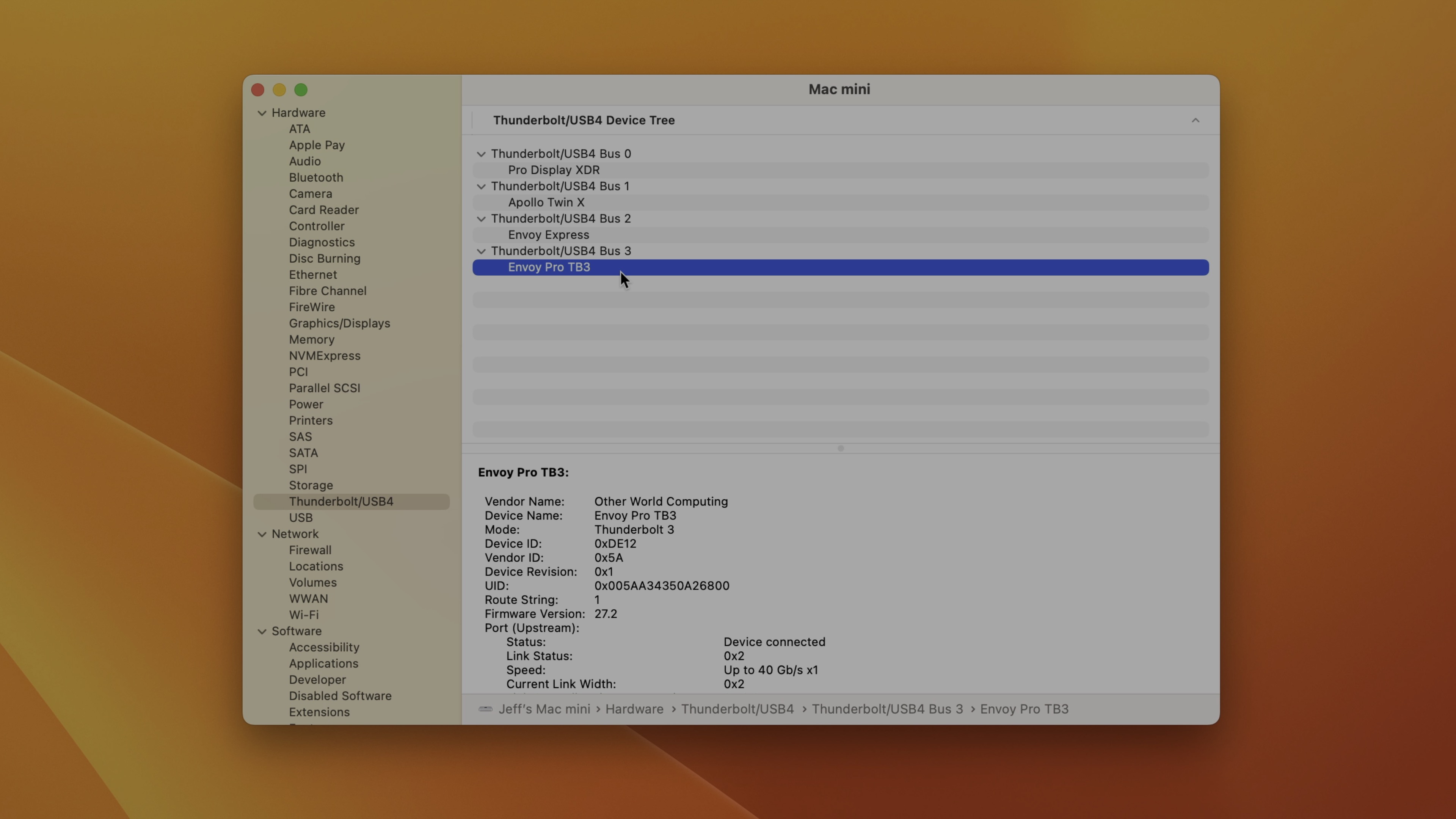 While the baseline M2 Mac mini again sports just two Thunderbolt 4 ports, the M2 Pro version has four. Having four Thunderbolt ports not only means that you can connect more physical devices to the Mac mini with M2 Pro, but it also features more Thunderbolt bandwidth, as each port is paired to its own dedicated bus. This means that you’ll be able to connect more high-performance devices, such as OWC’s Thunderblade SSDs, which require lots of bandwidth.