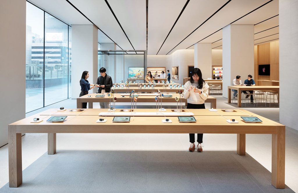 A few preview photos of the latest Apple Store have been shared, ahead of the opening of Apple Gangnam on Friday, March 31. It will be Apple’s fourth store in South Korea.