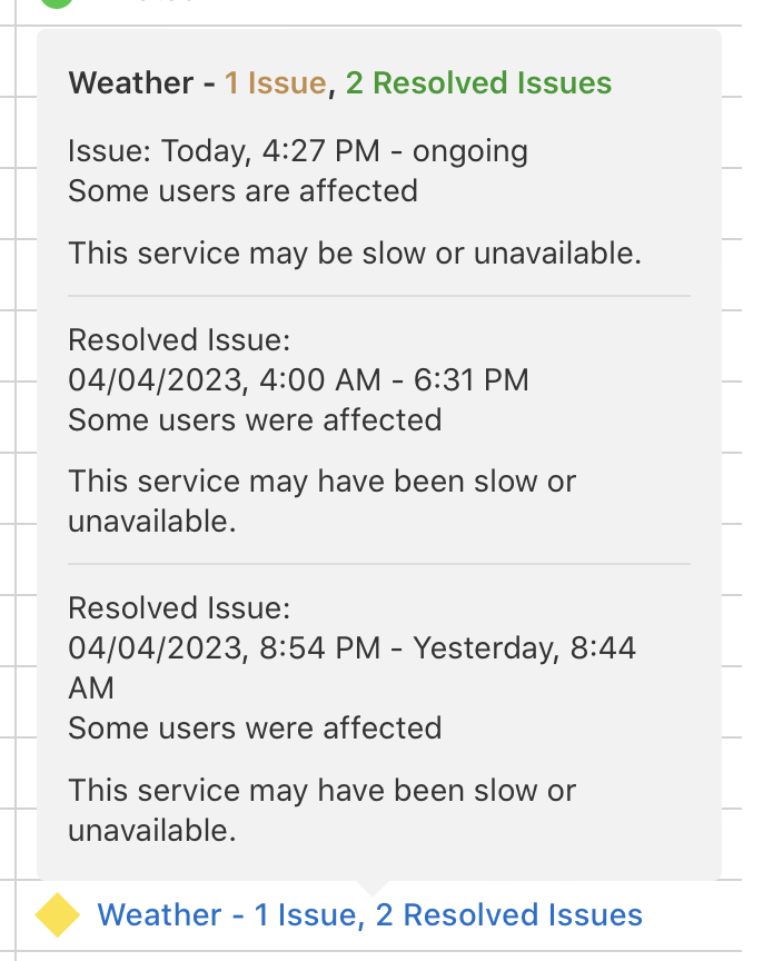 Apple officially acknowledged the latest occurrence of problems on its system status page, noting that Weather may be slow or unavailable.
