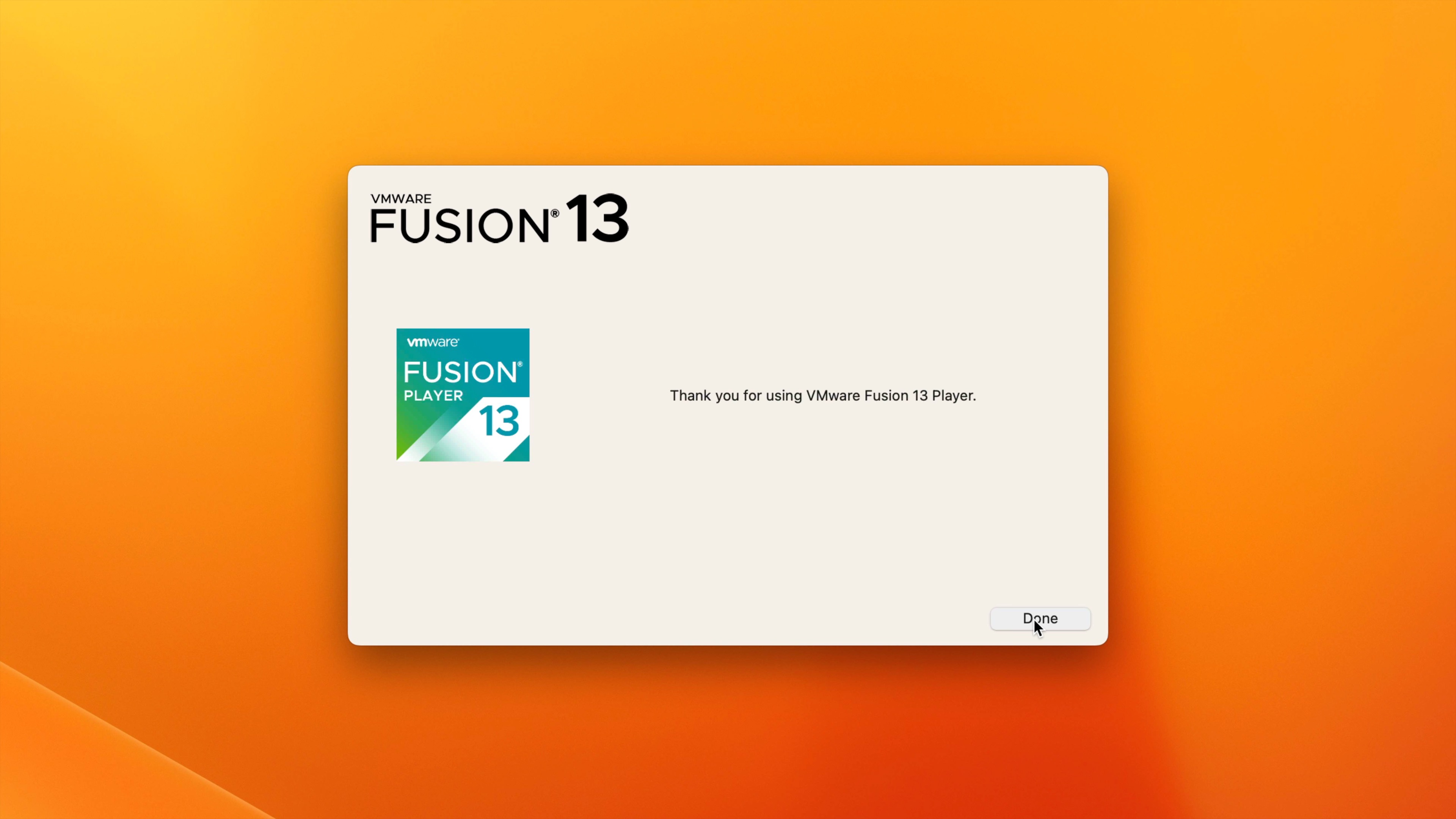 Step 6: Paste the personal license key created in Step 1 in the license key field. This key can be found under the License Information section of the License and Download tab on the VMware Fusion Player website. Click Continue in the bottom right-hand corner and then click Done.