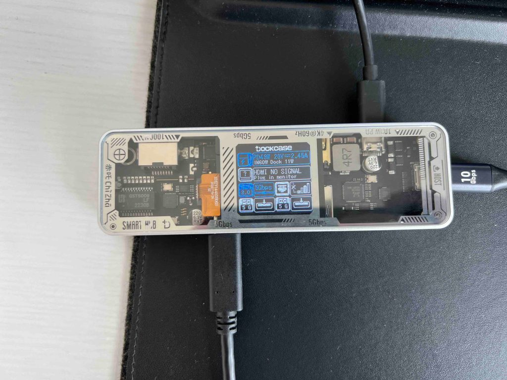 You might have noticed that the Dockcase comes with a small 1-inch display. This is where the magic happens. Being able to see everything that is happening every time you connect a new peripheral is just awesome. I plugged in my MacBook Air, and it showed me exactly how much power it was drawing. I was able to plug in my T7 SSD and saw how fast data was transferring. It also gave me the resolution of the monitor I had plugged in. This data is awesome to see in real time, and it’s very accurate. I was not able to test the ethernet port since I stick to Wi-Fi, but it will display your up-and-down internet speeds.
