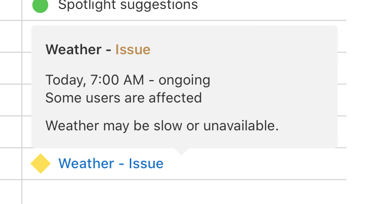 Update 10:00 am PT: Apple has acknowledged the downtime on its System Status page saying “Weather may be slow or unavailable” for “some users.”