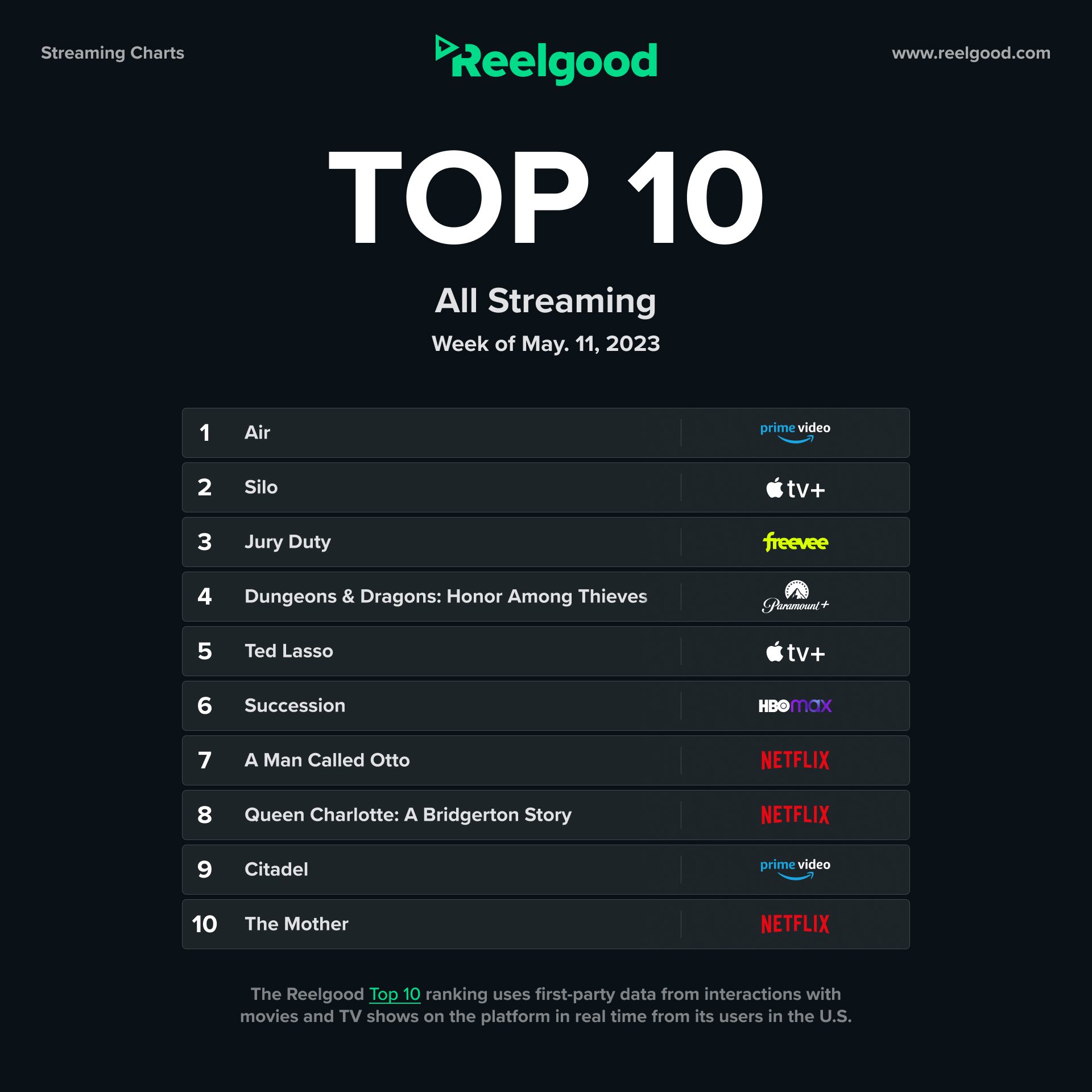 Now Reelgood has shared its list of top 10 streaming content for May 11-17 and Silo has landed at number two with Amazon Prime Video’s “Air” taking the number one spot.