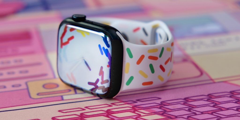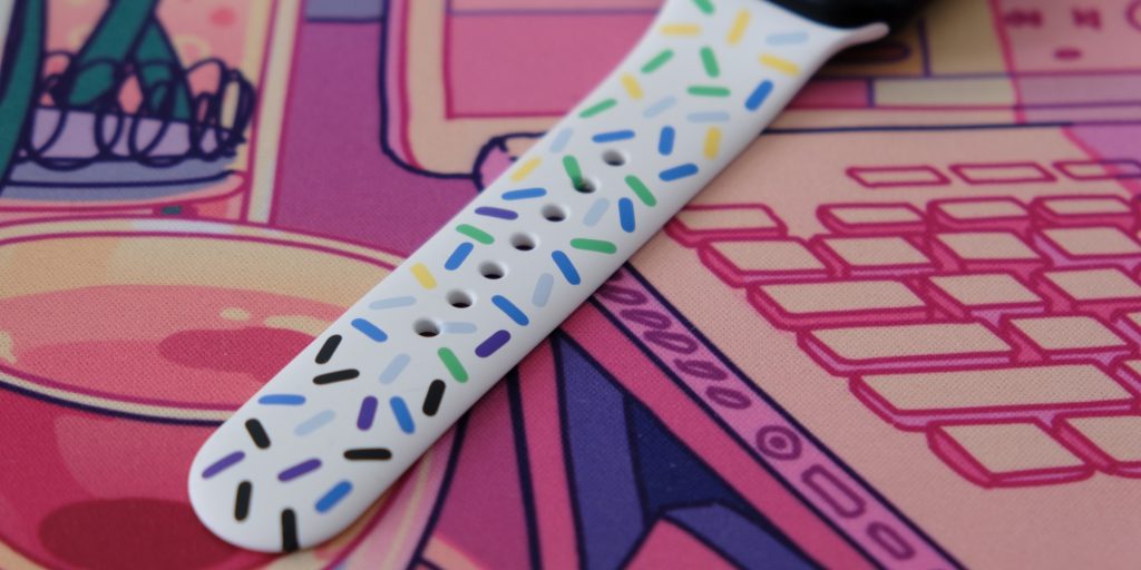 But now that goes out the window in favor of a design that’s inspired by confetti. The pure white band is sprinkled with color that pops out and pairs with the new Apple Watch face.