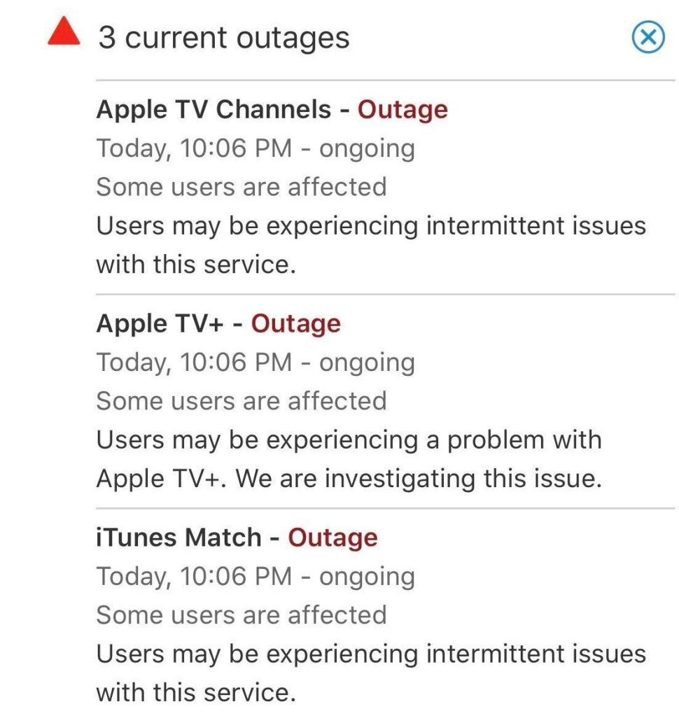 The Apple TV app services including Apple TV+ and Apple TV Channels are currently experiencing outages, according to Apple’s system status page.