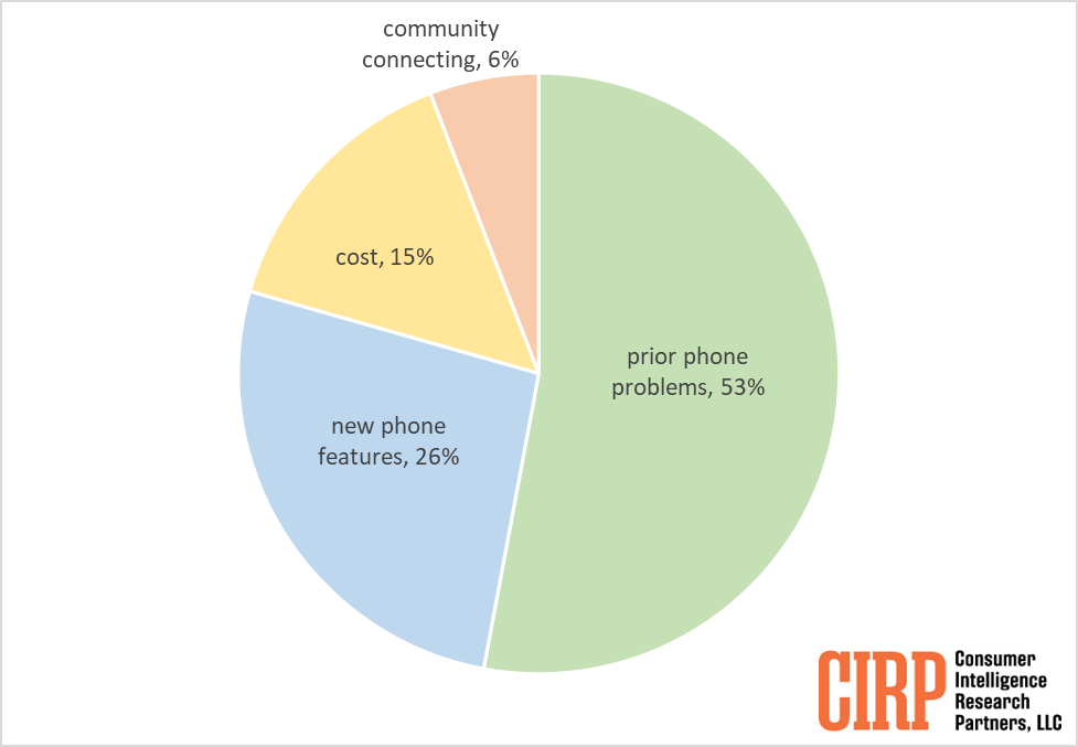 The second most common reason to switch was for new features on iPhone like “a better camera, enhanced accessory options, or a more intuitive user interface.”