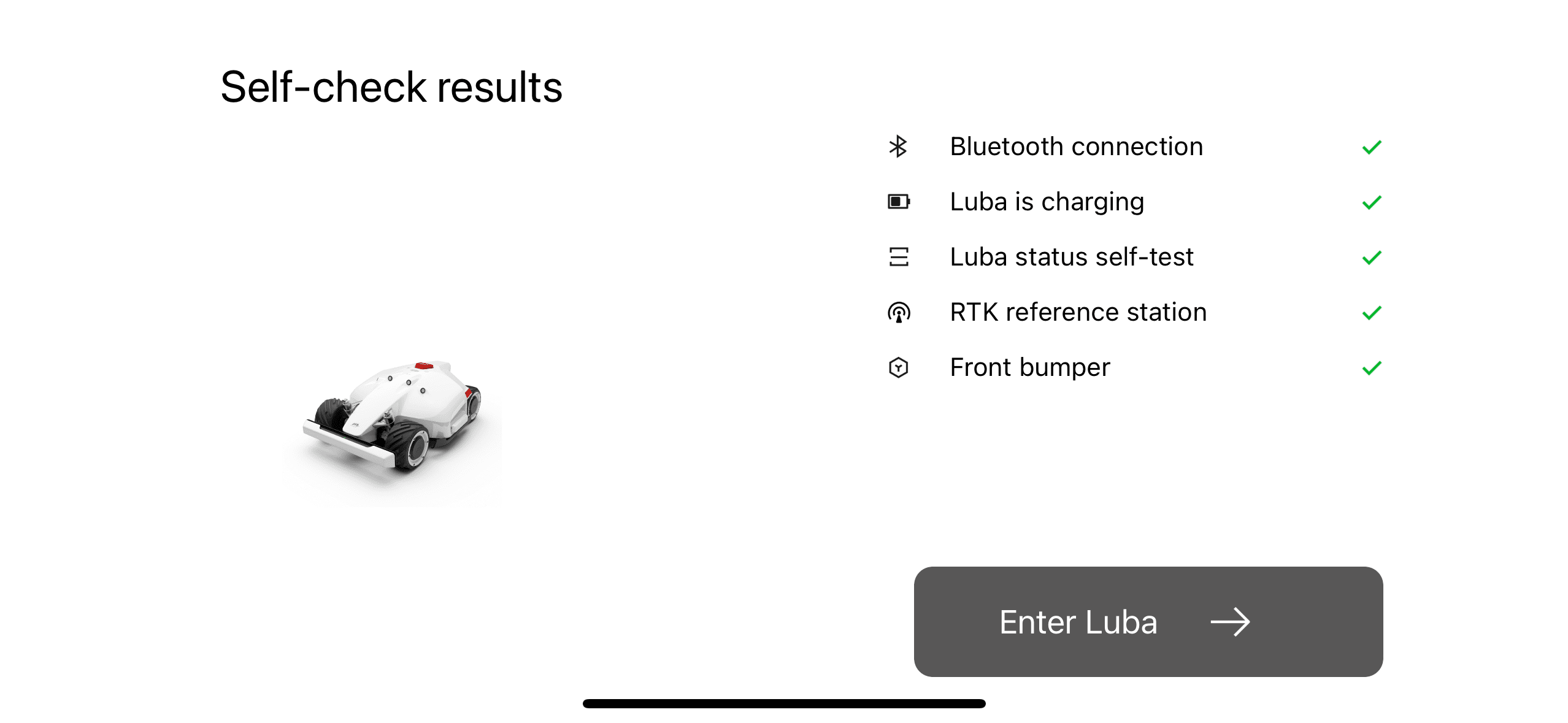 After you connect your iPhone with Luba, the mower will run a self-check to make sure the whole system is set up and operating correctly. Now you’re ready to map your yard.
