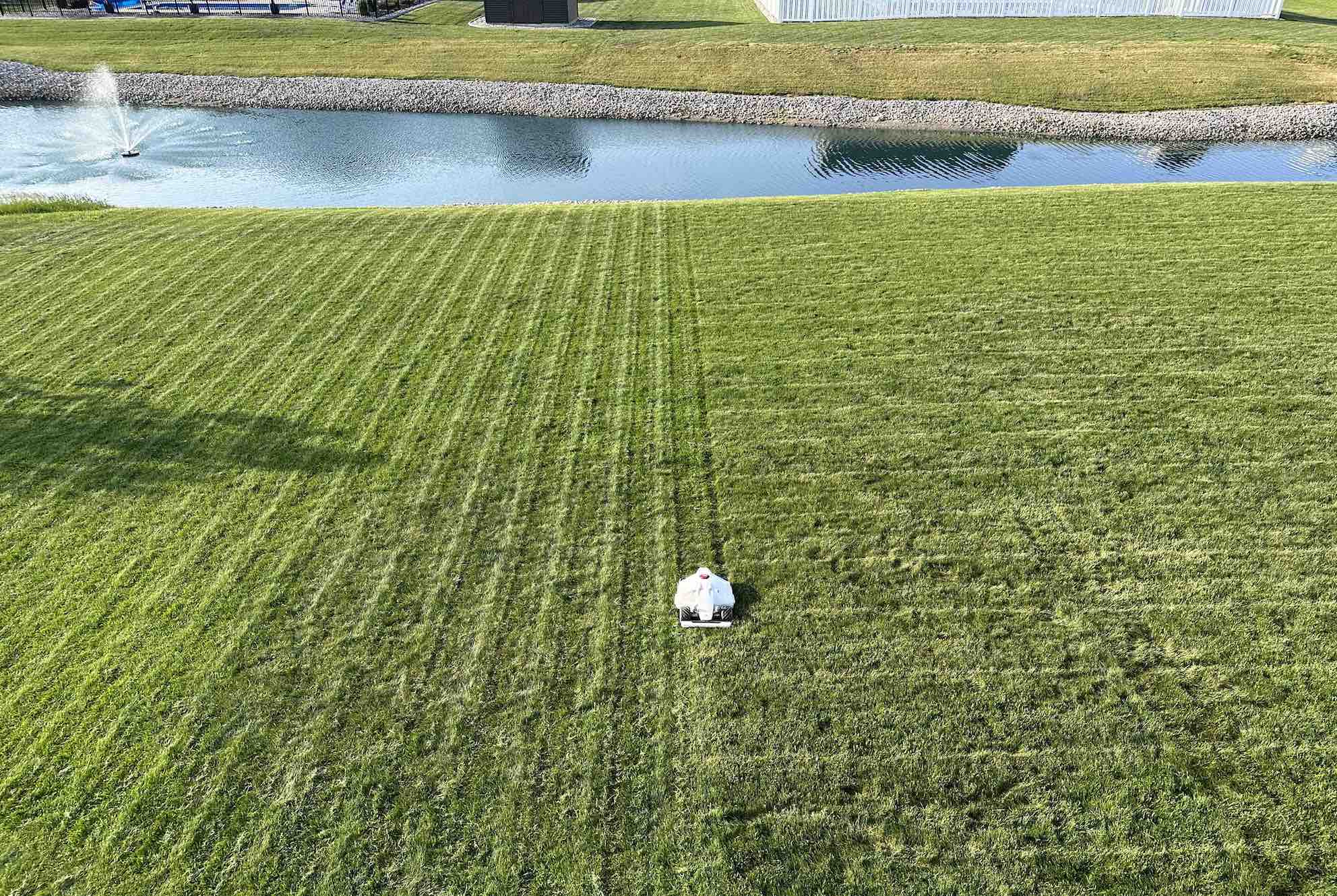 As you can sort of see above, we have a steeper area of lawn as it moves toward the pond. I was impressed by Luba’s AWD, it didn’t get stuck once even on some of the rougher terrain down there. Keep in mind you’ll probably need to weed-whack edging, in my experience Luba gets about 12 inches from the edges.