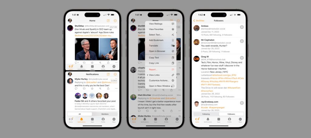 For instance, as MacStories points out, the Mastodon client Mona offers robust split-screen support. In Mona, you just tap a three-dot button and the app splits itself in half, so one window fills the top half and a second window fills the bottom. It’s a really well-done feature that shows a way Apple could do the same.