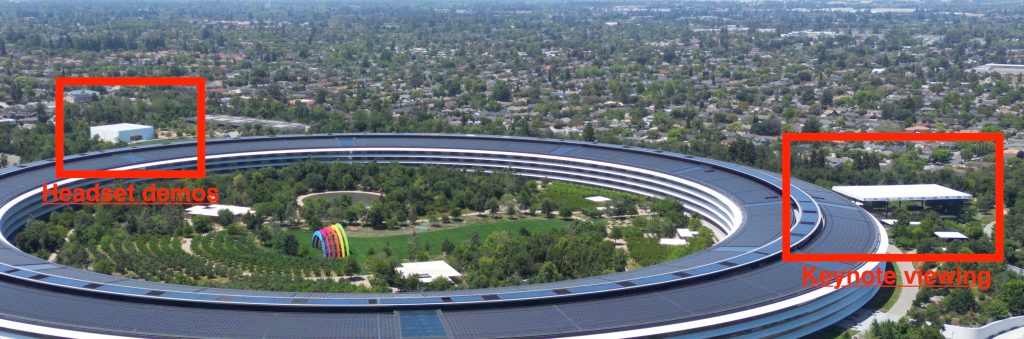 Pre-WWDC Apple Park drone images show headset demo area, new shaded viewing for keynote