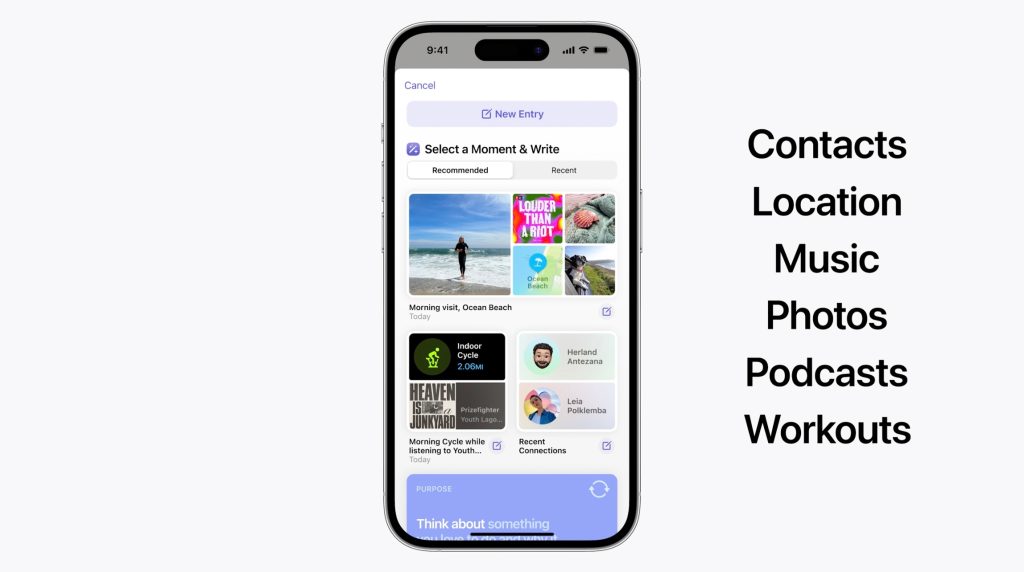 - Uses on-device machine learning to create personalized suggestions for journaling – Suggestions API for other apps