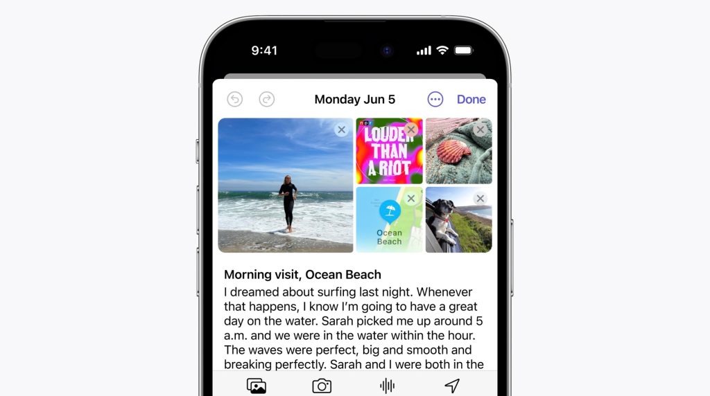 Journal is a new app that helps iPhone users reflect and practice gratitude through journaling, which has been shown to improve wellbeing. Using on-device machine learning, personalized suggestions can be provided to help inspire a user’s journal entry. Suggestions are intelligently curated from recent activity, including photos, people, places, workouts, and more, making it easy to start a journal entry, and scheduled notifications can help build a journaling habit. With the ability to lock the app, the use of on-device processing, and end-to-end encryption, Journal is built to protect a user’s privacy and ensure no one — including Apple — can access a user’s entries. With the new Journaling Suggestions API, developers will be able to add journaling suggestions to their apps.2
