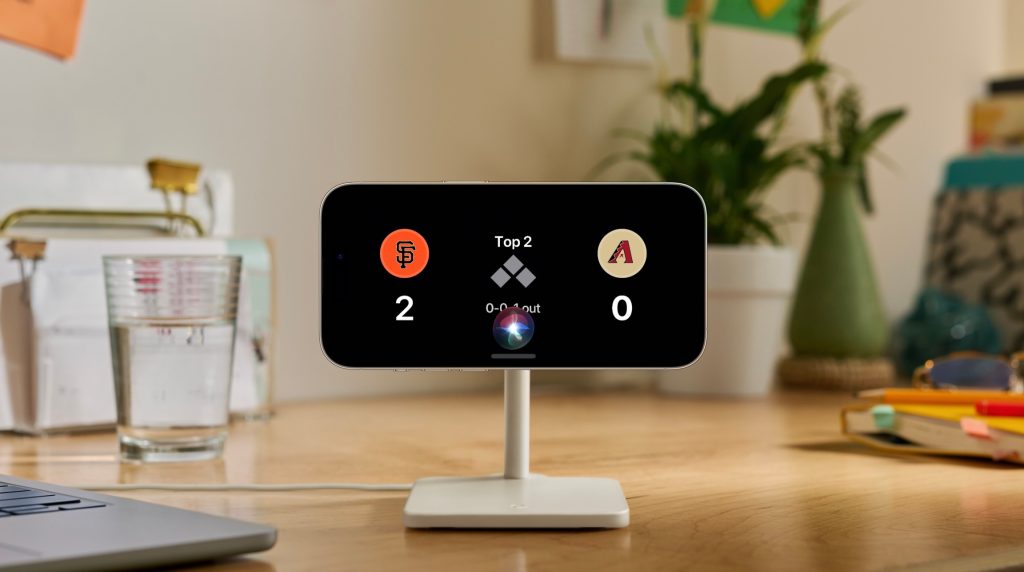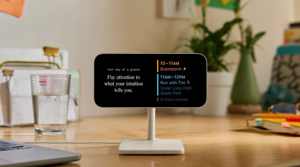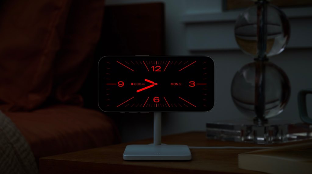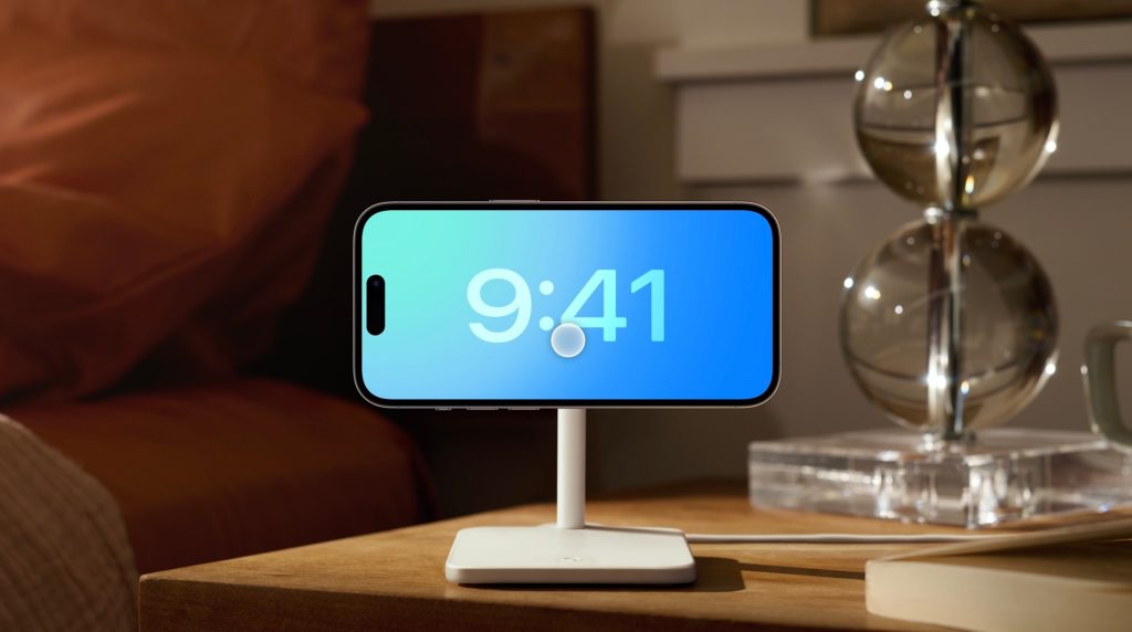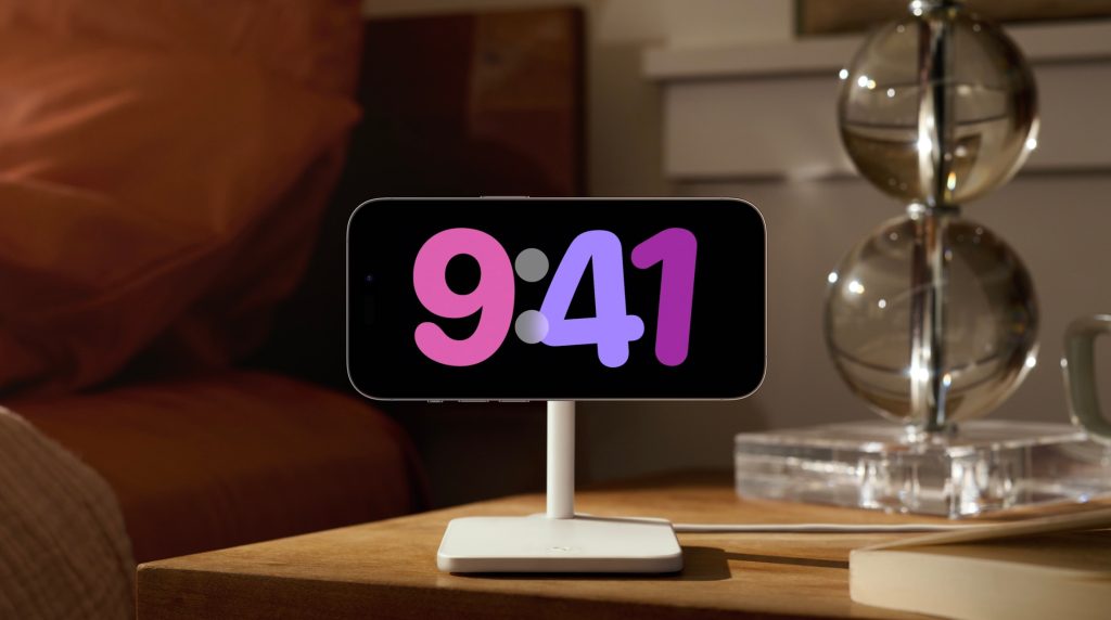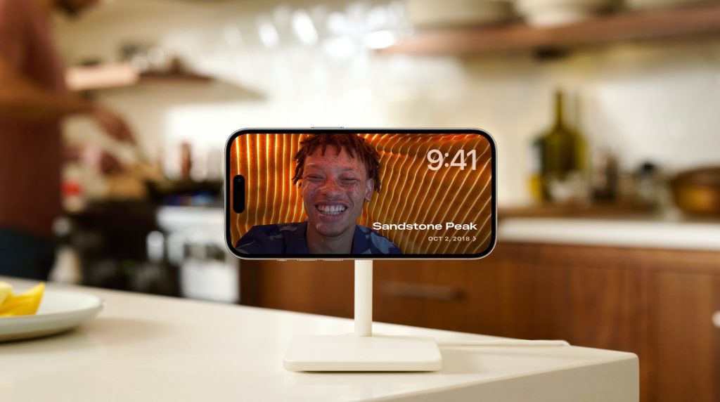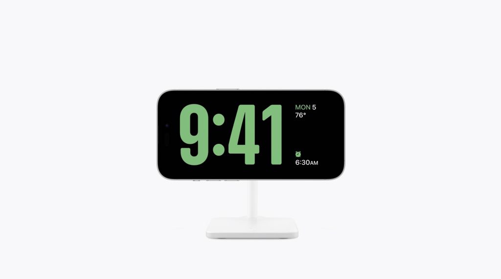 iOS 17 introduces StandBy, giving users a full-screen experience with glanceable information designed to be viewed from a distance when iPhone is on its side and charging. StandBy is perfect on a nightstand, kitchen counter, or desk, and can be personalized to display a range of beautiful clock styles, favorite photos, or widgets, including Smart Stacks, which surface the right widgets at the right time. With support for Live Activities, Siri, incoming calls, and larger notifications, StandBy makes iPhone even more useful when viewed at a distance. When charging with MagSafe, StandBy remembers a user’s preferred view. It is easy to bring up StandBy anytime by tapping the screen, and on iPhone 14 Pro with the Always-On display, it is always available.