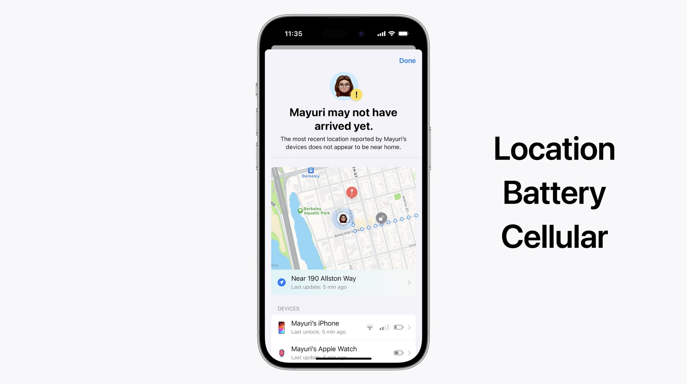 - Check In is a new feature for notifying family when you arrive safely; automatically recognizes when you don’t make progress or respond and shares update with family