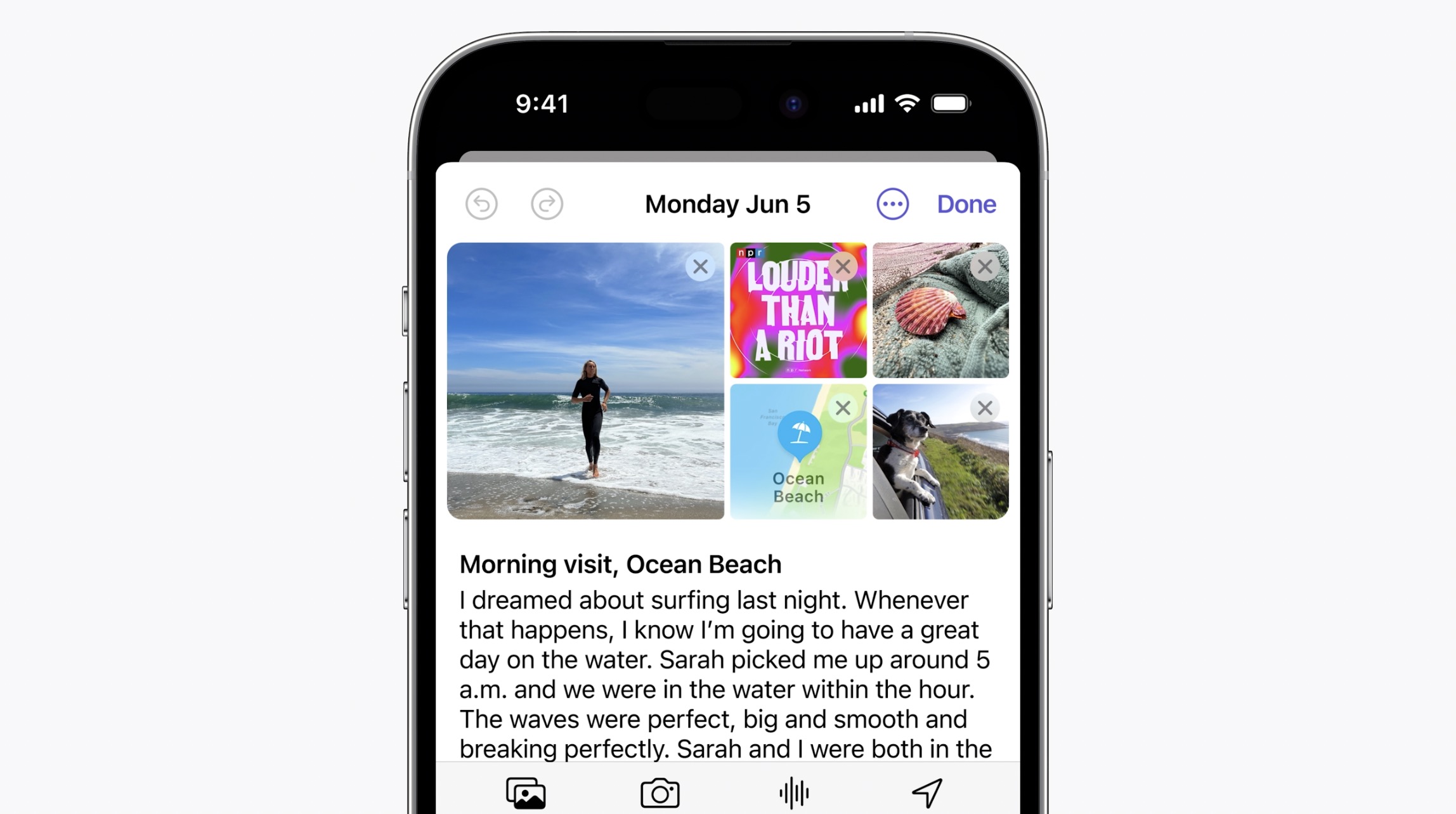 Journal is a new app that helps iPhone users reflect and practice gratitude through journaling, which has been shown to improve wellbeing. Using on-device machine learning, personalized suggestions can be provided to help inspire a user’s journal entry. Suggestions are intelligently curated from recent activity, including photos, people, places, workouts, and more, making it easy to start a journal entry, and scheduled notifications can help build a journaling habit. With the ability to lock the app, the use of on-device processing, and end-to-end encryption, Journal is built to protect a user’s privacy and ensure no one — including Apple — can access a user’s entries. With the new Journaling Suggestions API, developers will be able to add journaling suggestions to their apps.2