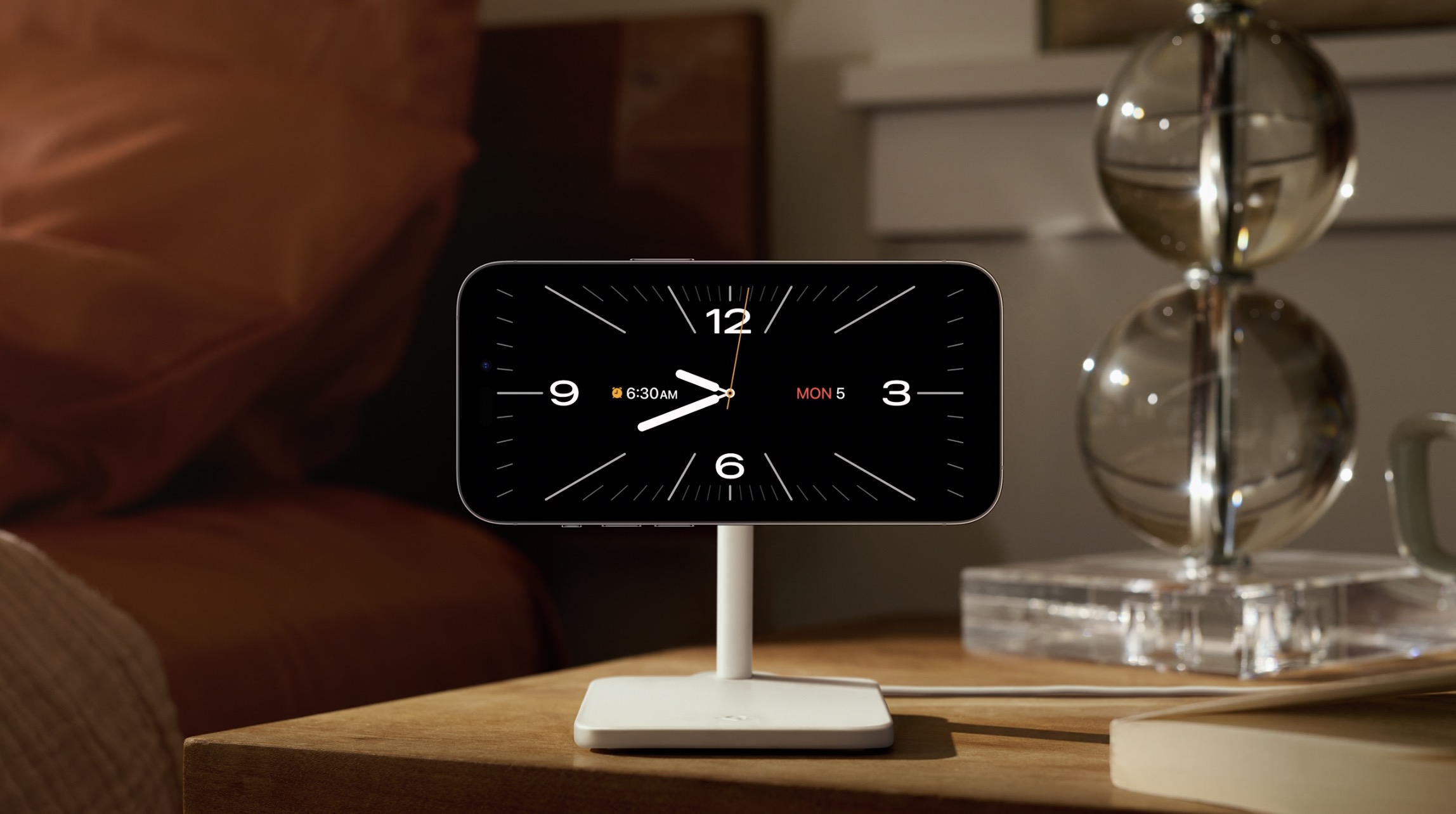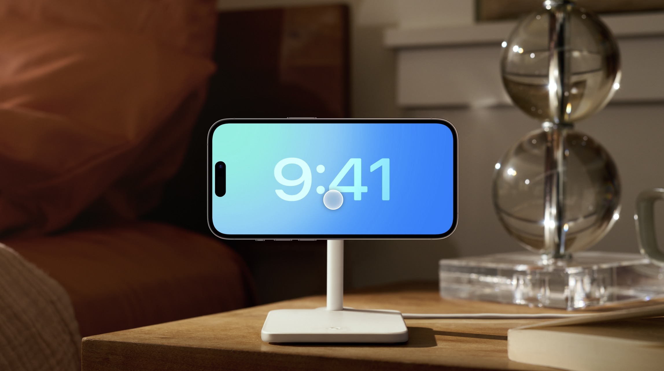 iOS 17 introduces StandBy, giving users a full-screen experience with glanceable information designed to be viewed from a distance when iPhone is on its side and charging. StandBy is perfect on a nightstand, kitchen counter, or desk, and can be personalized to display a range of beautiful clock styles, favorite photos, or widgets, including Smart Stacks, which surface the right widgets at the right time. With support for Live Activities, Siri, incoming calls, and larger notifications, StandBy makes iPhone even more useful when viewed at a distance. When charging with MagSafe, StandBy remembers a user’s preferred view. It is easy to bring up StandBy anytime by tapping the screen, and on iPhone 14 Pro with the Always-On display, it is always available.