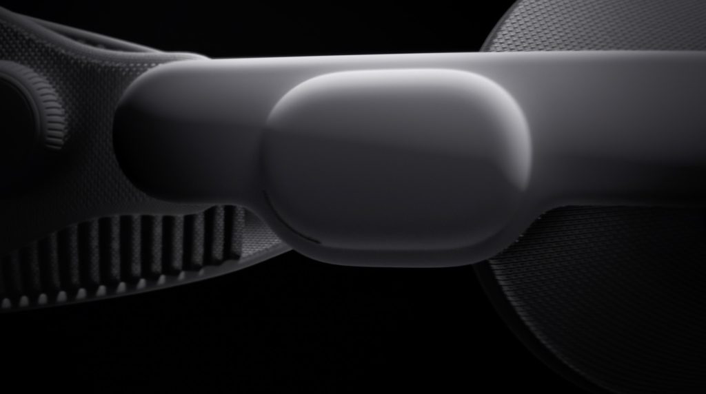 Apple Vision Pro has an astonishing amount of technology in a compact design. A singular piece of three-dimensionally formed and laminated glass is polished to create an optical surface that acts as a lens for the wide array of cameras and sensors needed to blend the physical world with digital content. The glass flows into the custom aluminum alloy frame that gently curves around the user’s face, while the modular system allows for a tailored fit to accommodate a wide range of people. The Light Seal is made of a soft textile, and comes in a range of shapes and sizes, flexing to conform to a user’s face for a precise fit. Flexible straps ensure audio remains close to the user’s ears, while a Head Band — available in multiple sizes — is three-dimensionally knitted as a single piece to provide cushioning, breathability, and stretch.1 The band is secured with a simple mechanism, making it easy to change to another size or style of band.
