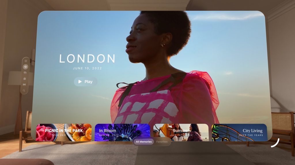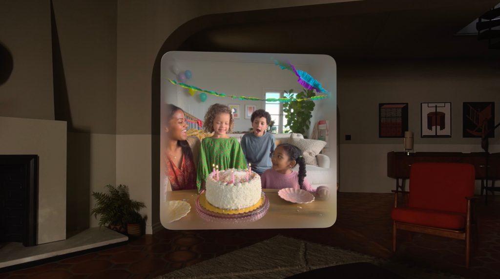 Memories come alive: Featuring Apple’s first three-dimensional camera, Apple Vision Pro lets users capture, relive, and immerse themselves in favorite memories with Spatial Audio. Every spatial photo and video transports users back to a moment in time, like a celebration with friends or a special family gathering. Users can access their entire photo library on iCloud, and view their photos and videos at a life-size scale with brilliant color and spectacular detail. Every Panorama shot on iPhone expands and wraps around the user, creating the sensation they are standing right where it was taken.