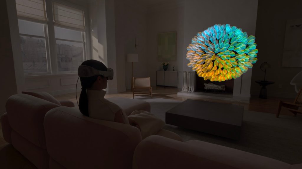 Vision Pro can capture spatial photos and videos. It can also simulate a dark theater in a bright room.