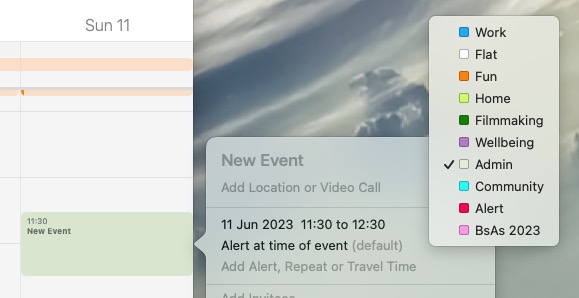 I’ve obviously removed the content from the screengrab of my calendar, but the colors indicate the category: